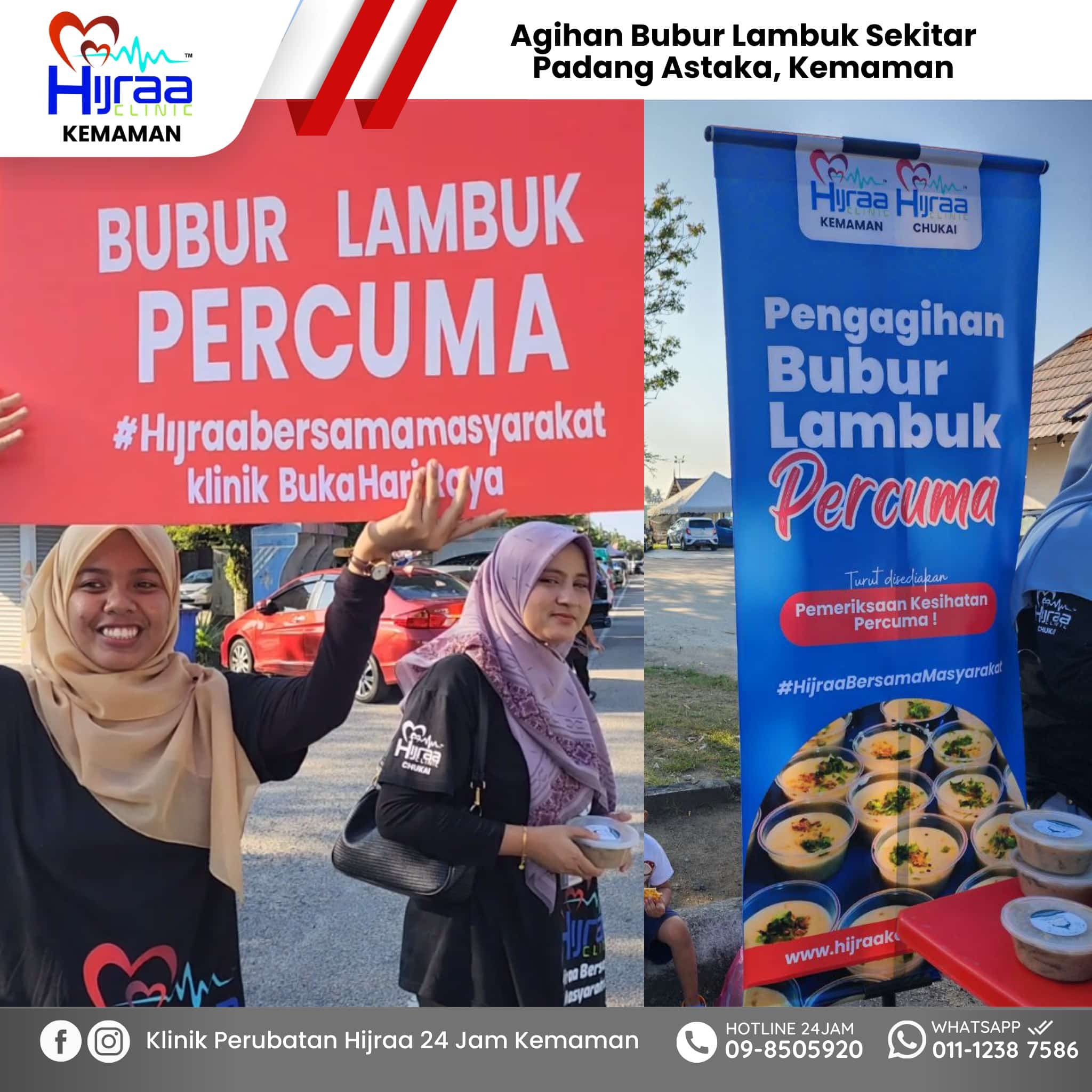Pada 4 April 2024, Klinik Perubatan Hijraa 24Jam Kemaman telah mengadakan program agihan bubur lambuk percuma di sekitar Padang Astaka, Kemaman. Program ini bertujuan bagi berkongsi rezeki bersama-sama masyarakat di sekitar Padang Astaka Kemaman yang hadir untuk mengunjungi bazaar ramadan.