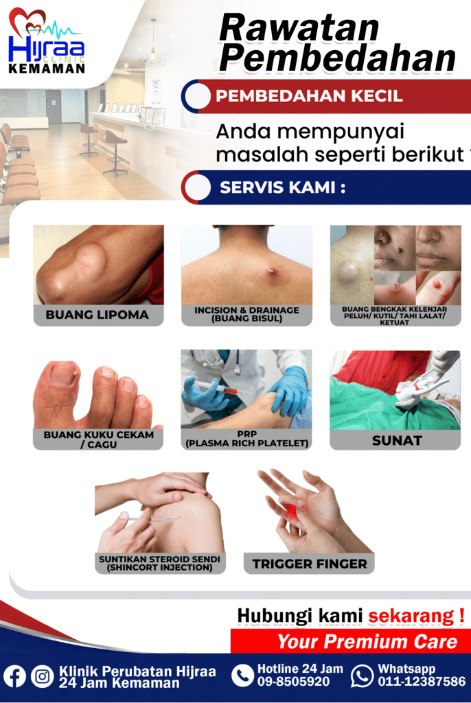 Pembedahan kecil sering kali dilakukan di bilik rawatan atau dewan bedah kecil dalam klinik dan biasanya tidak melibatkan kemasukan ke wad.